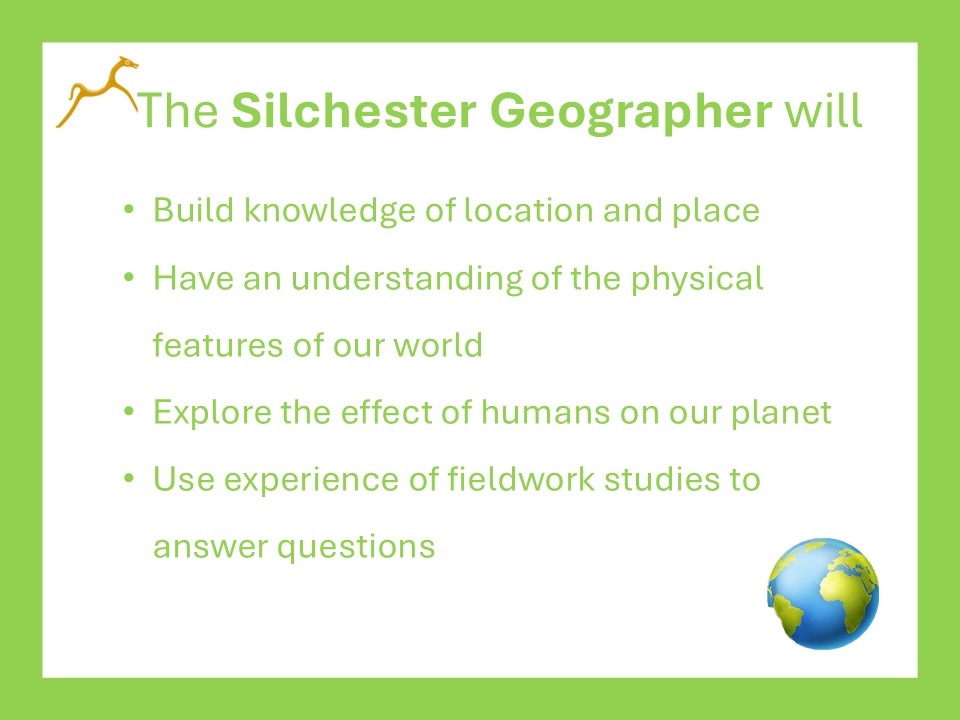 At Silchester, we want all children to be curious and fascinated about the world and its people. Children are taught geography through a purposeful, progressive and challenging curriculum. Children will be able to locate countries and oceans around the world and locate the cities and regions of the United Kingdom. They will be able to describe and understand key aspects of human and physical geography.